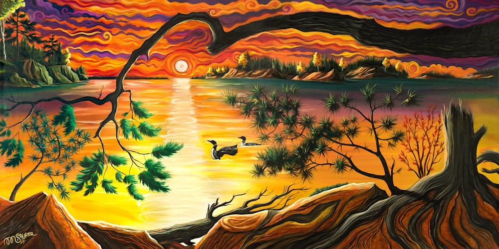 The sun sets on Lake Vermillion in Northern Minnesota. framed 24x48 in